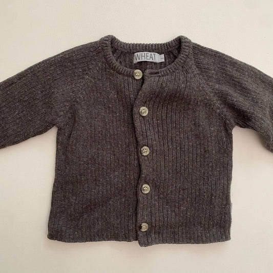 Wool-Bend Dark Grey Ribbed Cardigan (3-6M)